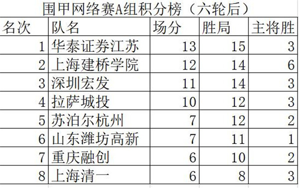 [附:2020年“華為手機(jī)杯”中國(guó)圍棋男子甲級(jí)隊(duì)聯(lián)賽網(wǎng)絡(luò)熱身賽A組積分排名表]
