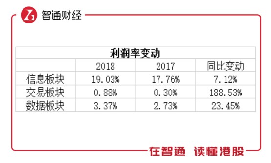 板塊方面,交易板塊是此次營收貢獻(xiàn)的主力軍,共為總營收貢獻(xiàn)81.5%的銷售收入。上半年,交易服務(wù)板塊營收入約30.9億人民幣,較去年5.06億增長(zhǎng)約510%。信息服務(wù)板塊營收約人民幣4.5億,同比增長(zhǎng)5.8%。數(shù)據(jù)服務(wù)板塊則貢獻(xiàn)營業(yè)收入約1.81億元人民幣,較去年1.09億增長(zhǎng)66%。利潤(rùn)率方面,信息服務(wù)增長(zhǎng)7.12%,交易服務(wù)增長(zhǎng)188.5%,數(shù)據(jù)服務(wù)增長(zhǎng)23.45%。
