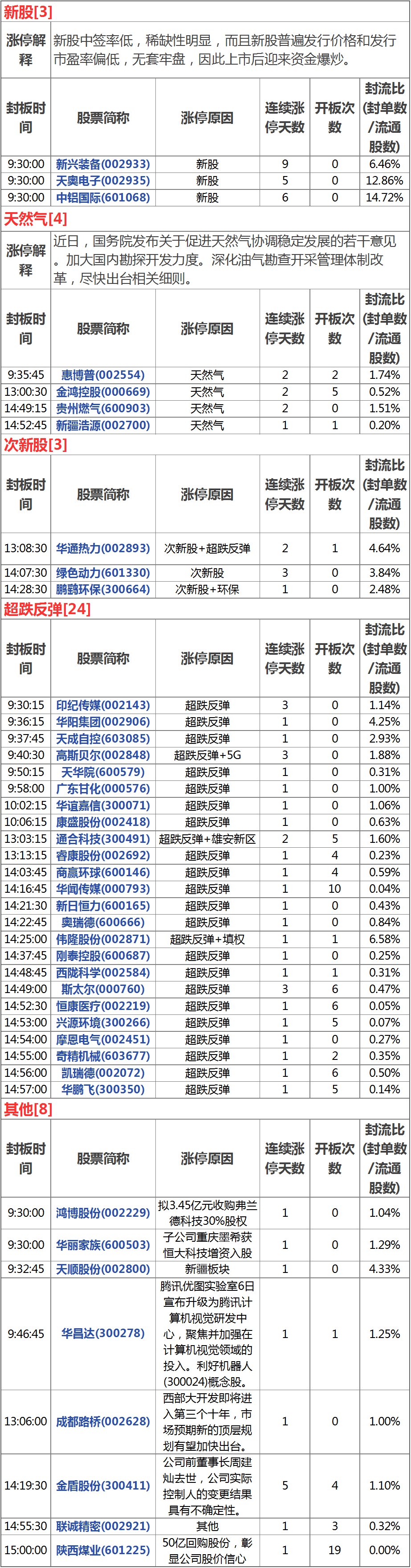 今天漲停家數(shù)較上一交易日有所增加,兩市共42家漲停;跌停6家。成交量方面,滬市成交1138億元,深市成交1582億元,兩市總成交額約為2720億元,較上一交易日放量224億。盤面上燃氣水務、黃金、煤炭等板塊漲幅前;電子發(fā)票、國產(chǎn)軟件、芯片等板塊跌幅居前。