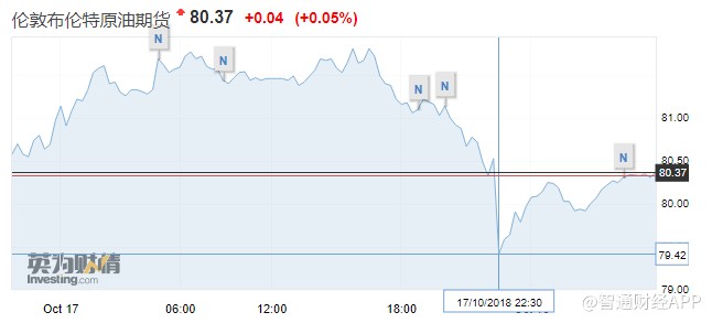 截至發(fā)稿,報(bào)80.37美元/桶,升0.05%或0.04點(diǎn)。WTI原油也有所下跌,報(bào)69.94美元/桶。