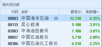 國際原油價格大跳水 港股“三桶油”集體下挫