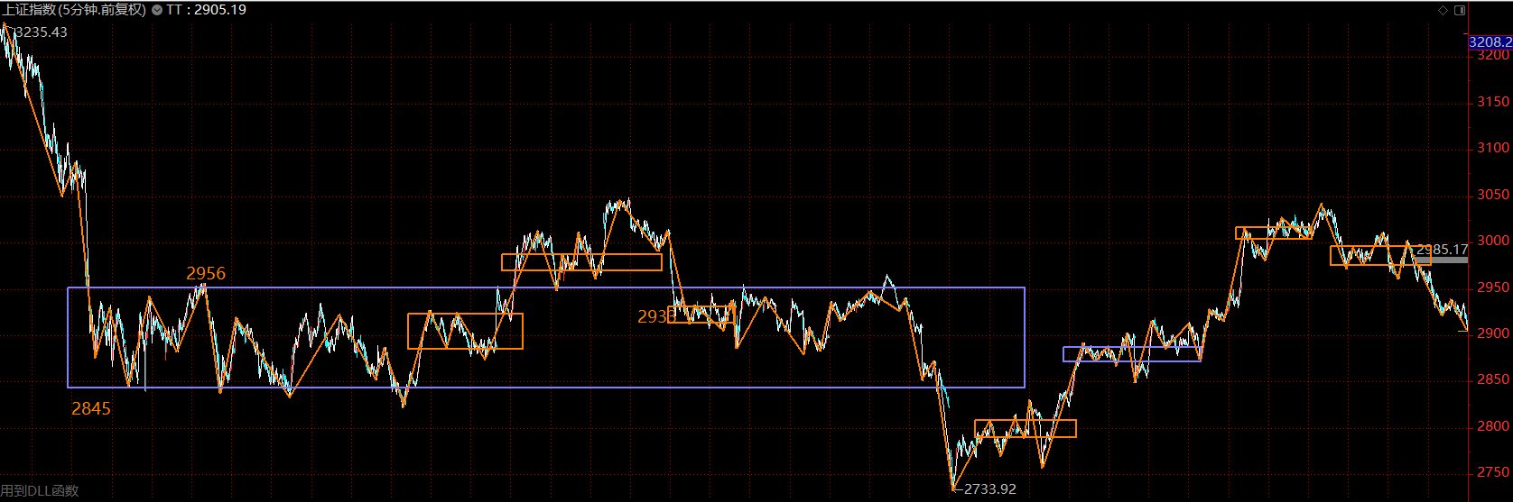 上證指數(shù)已跌回了大中樞內(nèi)部,目前最強支撐在中樞下軌2850附近。同時,從短線看,目前處于構(gòu)建五分鐘下跌趨勢第二個中樞的階段,即所謂的短線越跌越買的階段。投資者可稍微忽略指數(shù),著手分批布局三季報超預(yù)期個股,靜待反彈。
