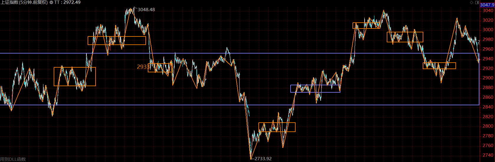 結(jié)構(gòu)上看,上證指數(shù)已跌回了大中樞內(nèi)部,市場情況不樂觀,大概率已經(jīng)確認上周一的高點為第二類賣點。那么這里應該轉(zhuǎn)向防守為主,反彈中應適度降低倉位,觀望等待。關注壓力位2970點附近,可據(jù)此高拋,靜待市場回落后再行布局。