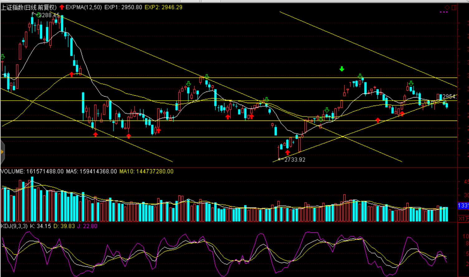 技術(shù)面:短期弱勢(shì)震蕩、滬綜指圍繞2950點(diǎn)一線上下波動(dòng)。