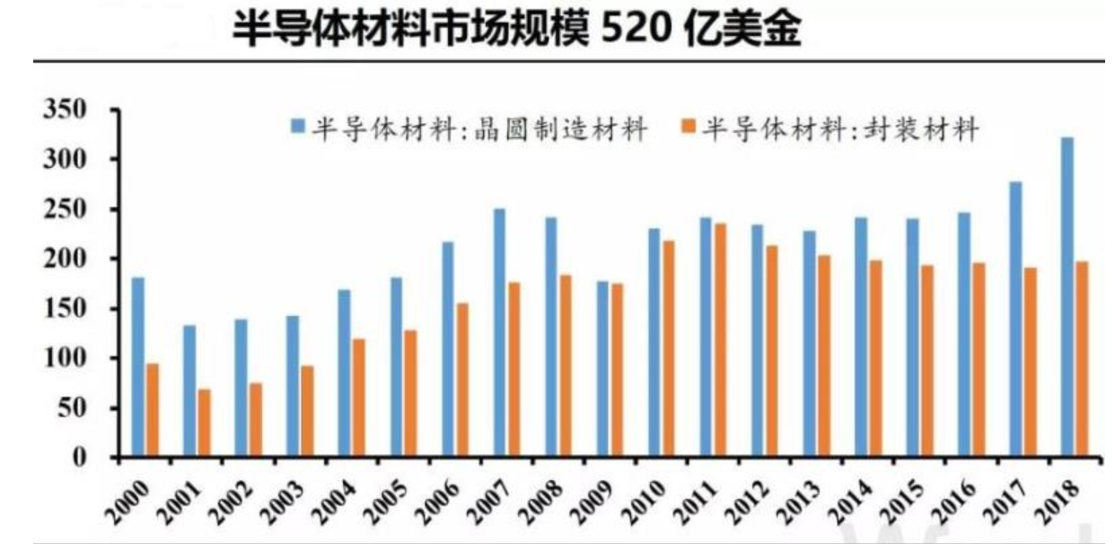 中國大陸和中國臺灣為全球半導(dǎo)體材料主要市場,未來需求將持續(xù)增加。至2018年,中國臺灣和中國大陸半導(dǎo)體材料市場分別為790億元和582億元,在全球占比分別為22.0%和16.3%,合計共38.3%。未來隨著晶圓廠投產(chǎn)量持續(xù)增加,市場規(guī)模將進一步擴大。