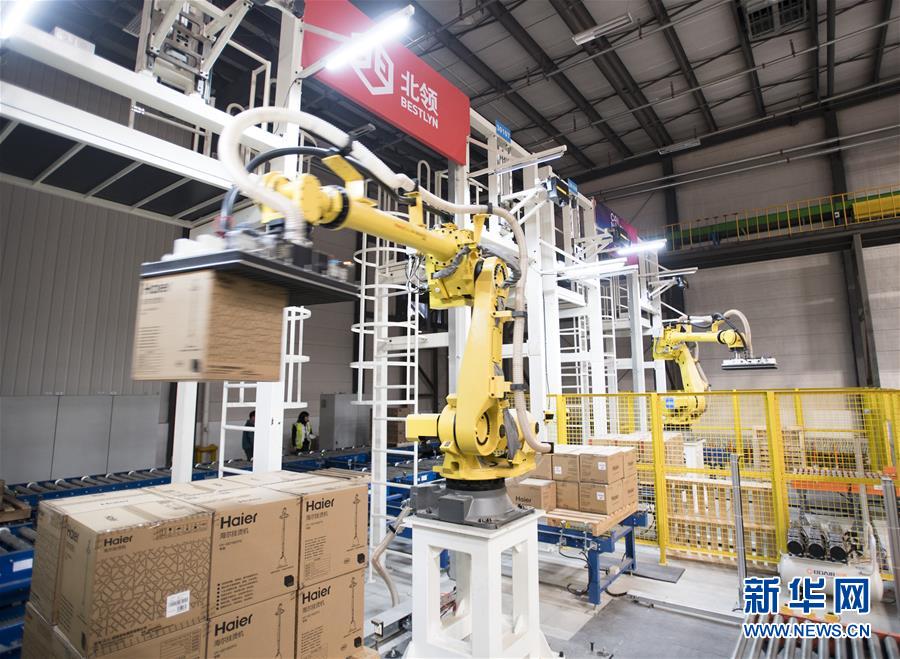 ??? 近日,在菜鳥網(wǎng)絡(luò)武漢黃陂物流倉內(nèi),一組機(jī)械臂在進(jìn)行搬運(yùn)作業(yè)。近日,菜鳥網(wǎng)絡(luò)在湖北武漢黃陂物流倉庫啟用智能機(jī)械臂來搬運(yùn)商品。據(jù)介紹,每組機(jī)械臂一個(gè)小時(shí)能搬運(yùn)1000件商品,可以24小時(shí)不間斷作業(yè)。這些機(jī)械臂的投入,有助于緩解高峰期貨物處理壓力,提高發(fā)貨速度,被工程師親切地稱為“麒麟臂”。新華社記者肖藝九攝