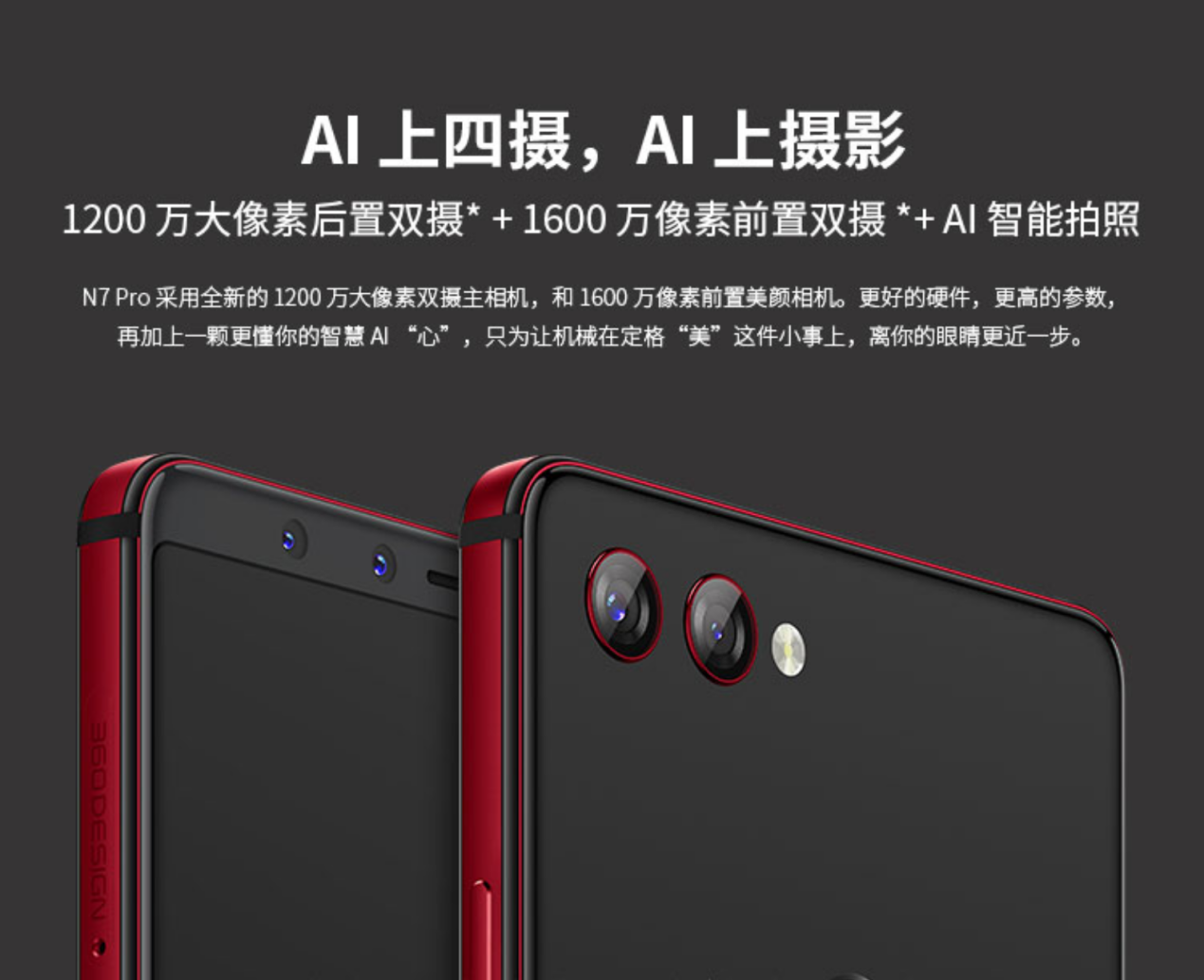 360手機(jī)N7 Pro采用了雙面玻璃機(jī)身設(shè)計,無劉海5.99英寸全面屏,分辨率2160×1080像素,有珊瑚紅和瑪瑙黑兩色可選。作為2018年度的旗艦機(jī)型,配置上,N7 Pro搭載當(dāng)前高通家族中最受關(guān)注的驍龍710處理器,4000mAh大容量電池,支持18W快充,官方宣稱20分鐘可充電30%,100分鐘可充滿。此外在拍照方面,360手機(jī)N7 Pro采用了堪稱耀眼的四攝設(shè)計。