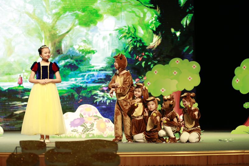 現(xiàn)場表演精彩紛呈,內(nèi)容積極向上,形式豐富多彩,表演生動逼真,充分展示出選手們奮發(fā)向上的精神風(fēng)貌,同時也展現(xiàn)了選手們的外語實(shí)際運(yùn)用能力和自主創(chuàng)新精神?!度虬坠蔷贰ⅰ端廊恕?、《冰河世紀(jì)》、《獅子王》、《皇帝的新裝》、《白雪公主和七個小矮人》、《小紅帽》、《馬良的神筆》……一個個經(jīng)典的童話故事,惟妙惟肖的表演,生動的詮釋著故事里的每一個角色,把觀眾帶入一個個美麗的童話世界。