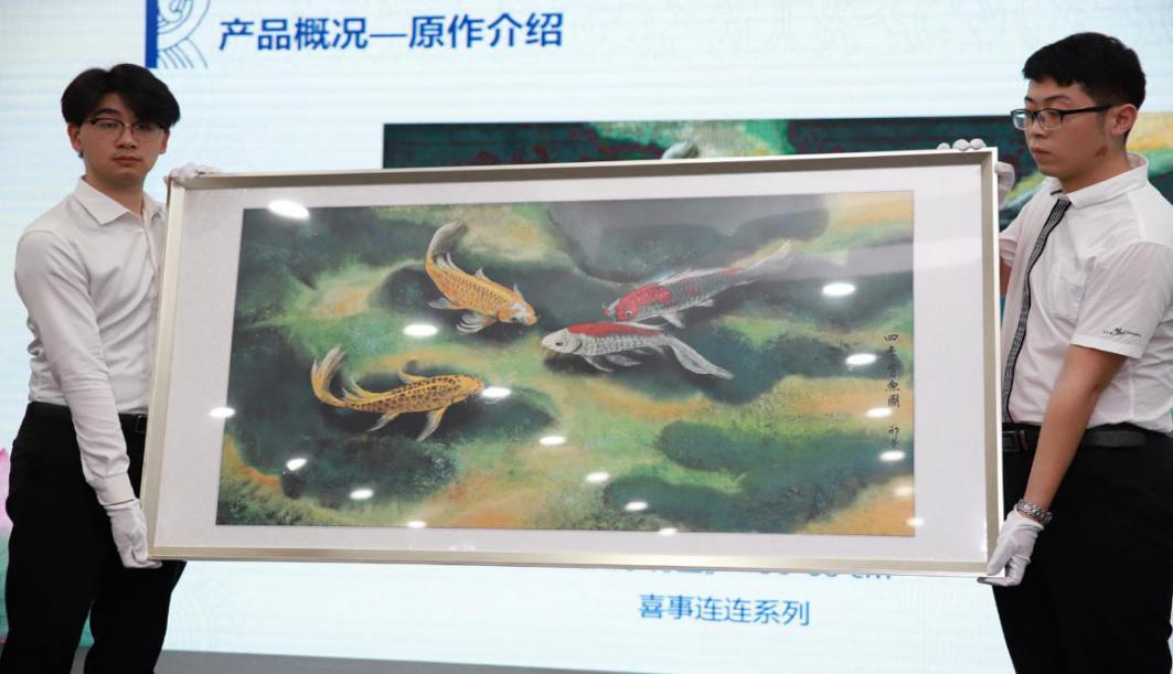 活動(dòng)現(xiàn)場(chǎng)還展示了這三幅版畫產(chǎn)品的樣品——《喜事連連》、《四季有魚》、《觀音寶像》,該產(chǎn)品具有三大亮點(diǎn):(一)藝術(shù)價(jià)值高;(二)投資潛力大;(三)稀缺性強(qiáng)。