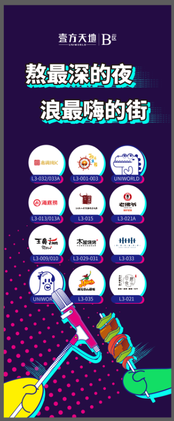 購物中心是城市的精華,也是生活方式的容器。B區(qū)洞察了當代年輕人的這一消費習慣,發(fā)力“夜經(jīng)濟”,精心打造夜市街區(qū)——嗨FUN宵夜街。