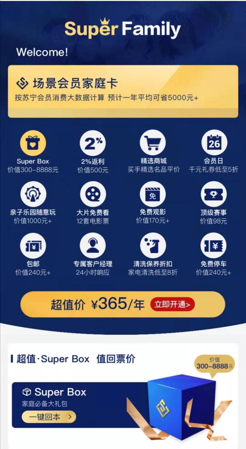 “在設(shè)計(jì)這款會(huì)員產(chǎn)品時(shí),我們希望能觸達(dá)每一位家庭成員?!碧K寧相關(guān)負(fù)責(zé)人解釋說(shuō):“比如媽媽,她用的更多的可能是購(gòu)物,那么家庭會(huì)員有購(gòu)物2%的返利;爸爸可能喜歡體育,我們有頂級(jí)賽事的觀賽劵贈(zèng)送;對(duì)于孩子,我們提供了免費(fèi)游玩樂(lè)園、免費(fèi)看電影、免費(fèi)停車等福利,讓全家人盡情享受親子時(shí)光?!?/p>