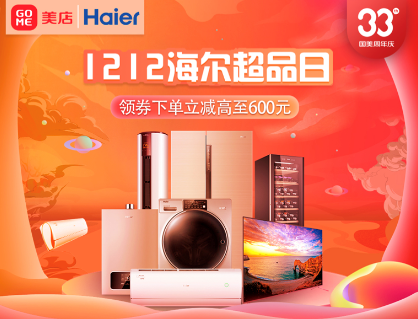 12月12日-15日,33周年生日之際,國美與海爾再度攜手,國美美店帶來1212海爾超級品牌日活動,涵蓋了海爾冰箱、洗衣機(jī)、空調(diào)、電視、廚房衛(wèi)浴等多個(gè)品類豐富產(chǎn)品,多重優(yōu)惠福利、六大承諾保障、延保清洗服務(wù),其中多個(gè)年度爆款值得期待。