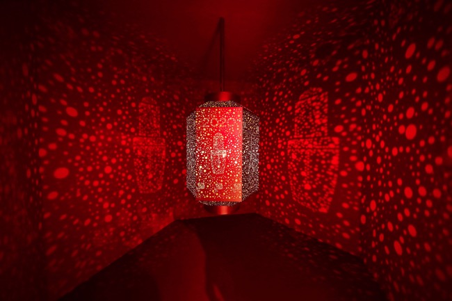 璀璨光芒自中央巨大華美鏤空燈籠中散發(fā),熠熠生輝,四周投射出美麗非凡的奇幻光影,交織成美輪美奐的法式元素。輕輕撥動(dòng),華美燈籠裝置緩緩轉(zhuǎn)動(dòng),點(diǎn)點(diǎn)光影如走馬燈般流轉(zhuǎn)變幻,打造震撼視覺(jué)體驗(yàn)。