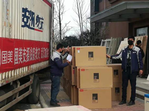 2月13日下午,國(guó)美還有援建武漢市九醫(yī)院東院A區(qū)方艙醫(yī)院的任務(wù),捐助200臺(tái)電視并完成配送。為了保證盡快完成如此大需求量的配貨,國(guó)美緊急調(diào)配了包括國(guó)美、TCL及海爾品牌電視,從武漢倉(cāng)庫(kù)直接配送到方艙醫(yī)院,并按計(jì)劃于14日安裝調(diào)試。