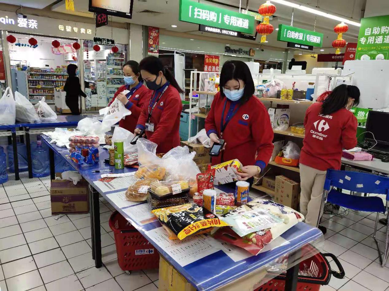 市場上餐飲門店關(guān)停后,保障員工用餐成為蘇寧家樂福的重中之重。因此,蘇寧家樂福為所有的在崗員工提供了工作餐,保證員工用上健康的熱飯。此外,家樂福還為所有在崗員工提供工作餐,還額外準(zhǔn)備了速食面、八寶粥、面包、牛奶、功能飲料等方便食品供員工工作時補充能量。
