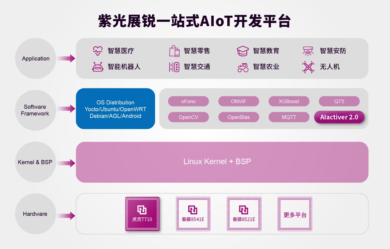 作為紫光展銳新一代AIoT開發(fā)平臺,平臺綜合了先進的開放性架構、高性能AI邊緣計算能力、豐富的開發(fā)組件,這些將切實解決AIoT應用場景的碎片化、多樣化和數(shù)據(jù)安全三大挑戰(zhàn),有效降低開發(fā)者開發(fā)成本,縮短產品開發(fā)周期,為A IoT開發(fā)提供全行業(yè)一站式解決方案。