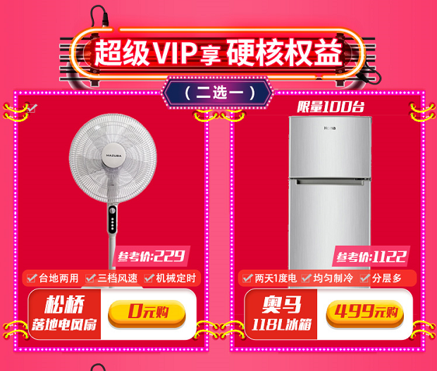 六大權(quán)益中,最核心的是,付費(fèi)VIP可以在直播間享受0元購(gòu)價(jià)值229元風(fēng)扇或499元購(gòu)買(mǎi)冰箱(二選一)的權(quán)利。其他五項(xiàng)權(quán)益分別是享大牌家電直播間專(zhuān)屬價(jià),得400元消費(fèi)券,辦聯(lián)通/電信套餐購(gòu)電器最高立減900元,免費(fèi)試用洗碗機(jī)、智能門(mén)鎖、垃圾處理器等家電、以及獲得直播間抽獎(jiǎng)資格。