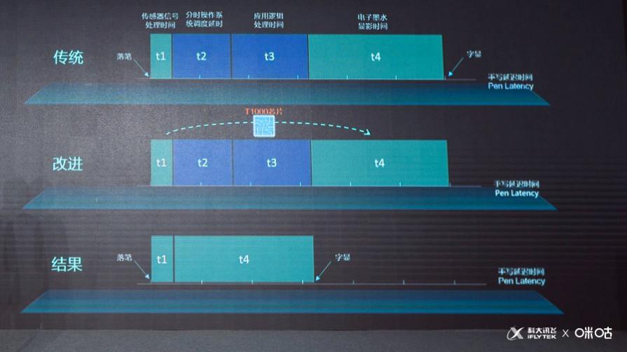 為了實(shí)現(xiàn)這個(gè)突破,智能本與E Ink原廠通力合作、聯(lián)合調(diào)優(yōu),在業(yè)界首次實(shí)現(xiàn)了墨水屏手寫處理芯片化(T1000芯片),直接將寫顯延遲中的軟件處理部分通過(guò)芯片實(shí)現(xiàn),大大的縮短了墨水屏的寫顯延遲。當(dāng)前,在咪咕訊飛智能本青春版中,寫顯延遲僅30毫秒左右。在用戶直接的主觀體驗(yàn)測(cè)試中,已經(jīng)做到了“幾乎無(wú)延遲感”、“像真紙一樣的書(shū)寫速度”。