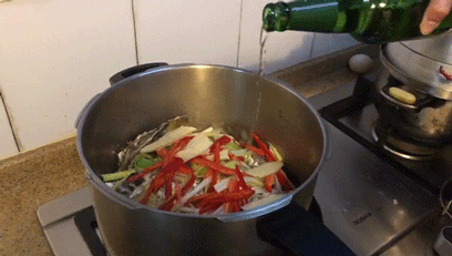 每個(gè)生蠔手工挑選,新鮮肥美!沖洗干凈,放入高壓鍋,放大蔥絲、姜片、紅辣椒絲,倒入啤酒,開火!隔酒蒸,上氣后,蒸30秒-1分鐘,就可以開鍋啦!