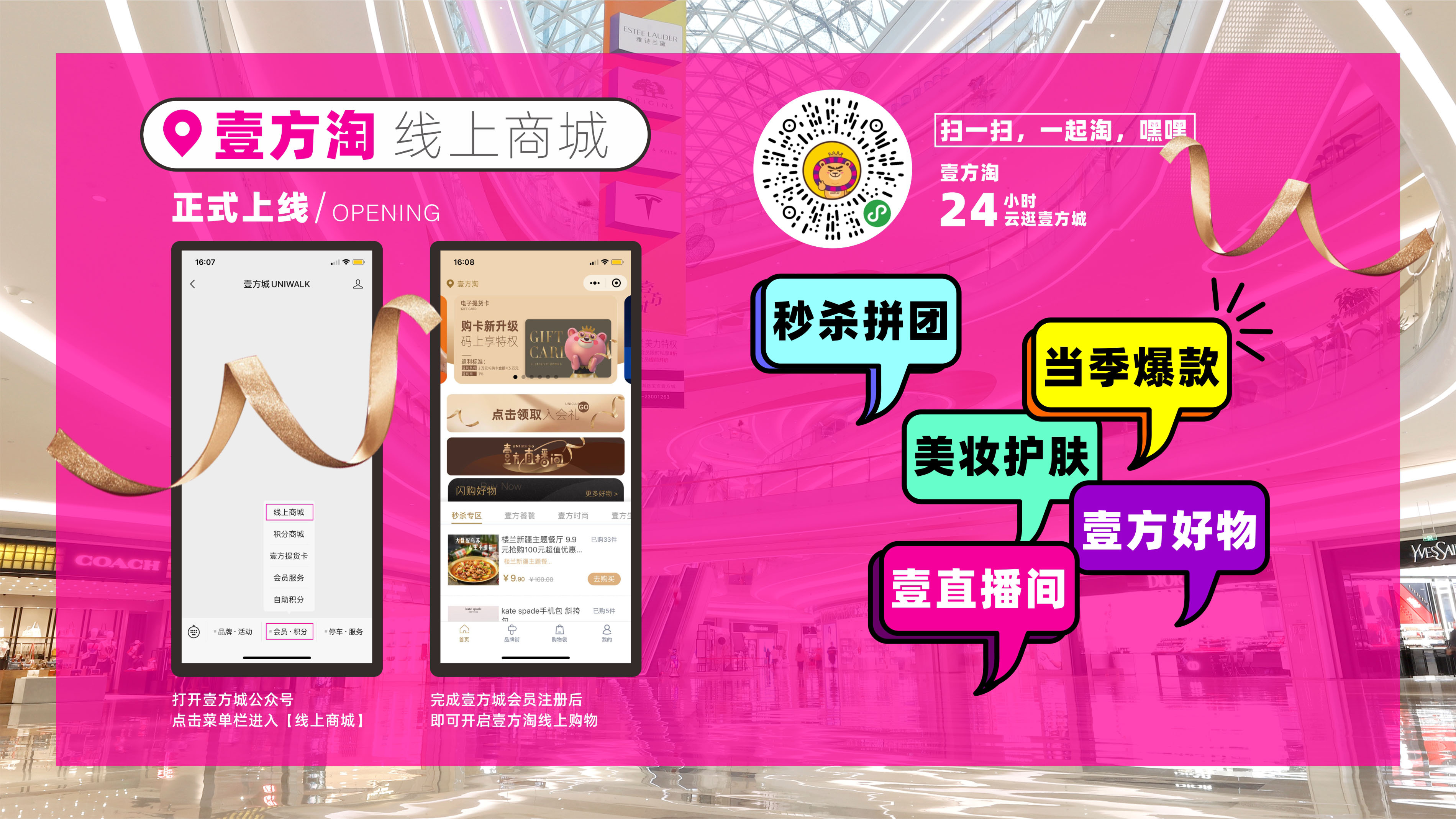 布局線上商城的同時,壹方也通過更多方式進行創(chuàng)新營銷,充分發(fā)揮商業(yè)排頭兵“創(chuàng)新變革”的魄力,滿足顧客購物需求的基礎上,線上線下多渠道整合聯(lián)動,不斷為消費者帶來全新生活場景體驗。