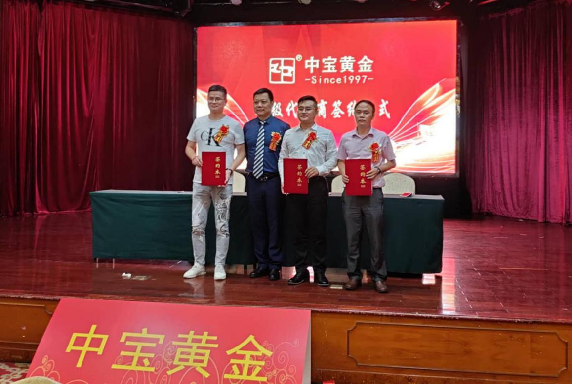 現(xiàn)場邀請一飛老師講解新零售,并現(xiàn)場開啟中寶黃金直播間。隨后還進(jìn)行了簽約儀式,中寶黃金與中國工藝集團(tuán),阿瑪尼品牌,北京榮寶齋,達(dá)成戰(zhàn)略合作伙伴關(guān)系。