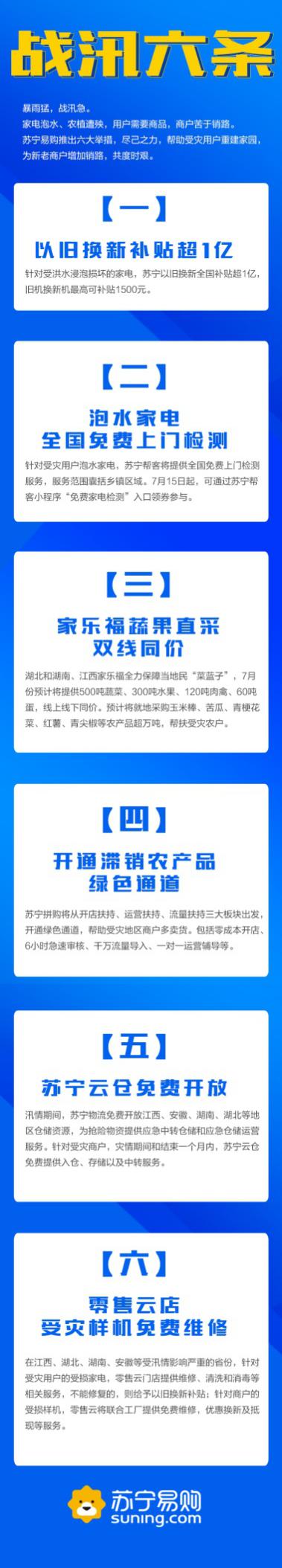 家電是蘇寧的長板,泡水家電汛后檢測、維修成為政策發(fā)力點(diǎn)。
