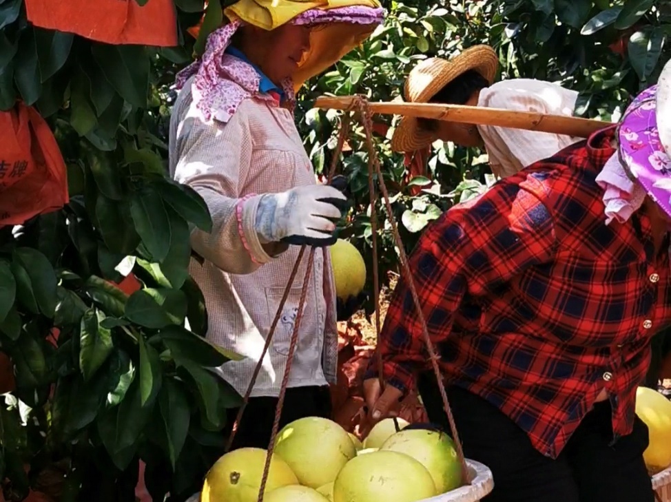 梅州果農(nóng)忙于采摘新產(chǎn)季蜜柚,通過(guò)京喜產(chǎn)地直發(fā)到消費(fèi)者家里