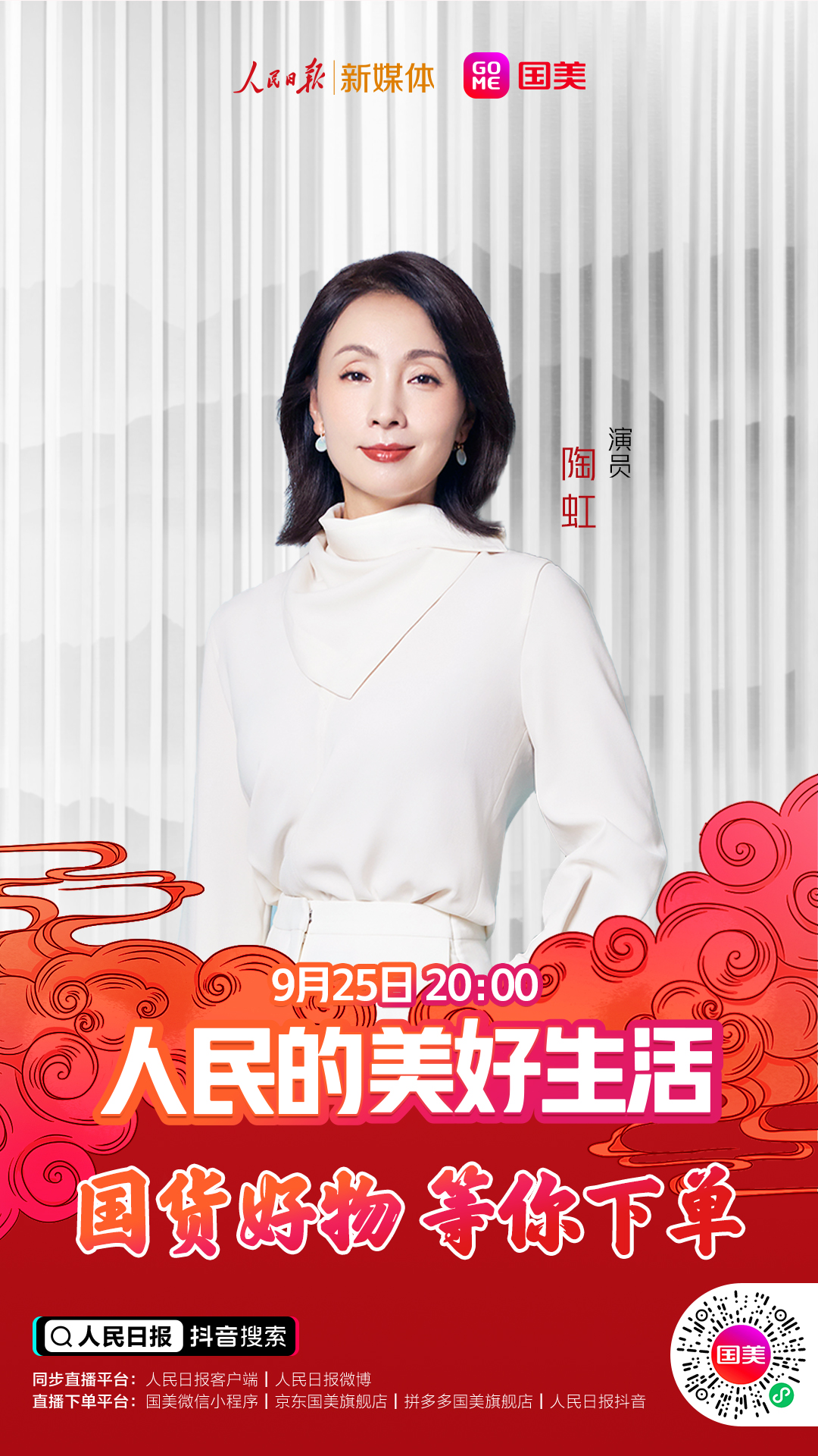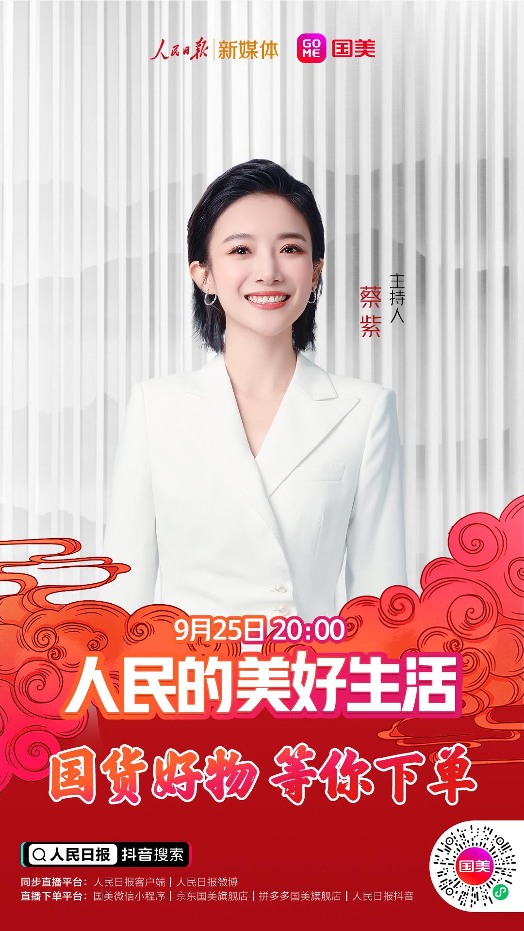9月25日(周五)晚20點(diǎn),鎖定人民日報抖音號、國美商城抖音號、國美微信小程序、國美京東旗艦店、國美拼多多旗艦店,關(guān)注直播,國貨好物,等你下單!人民的美好生活,不能少了你?。ǔ\娖剑?/p>
