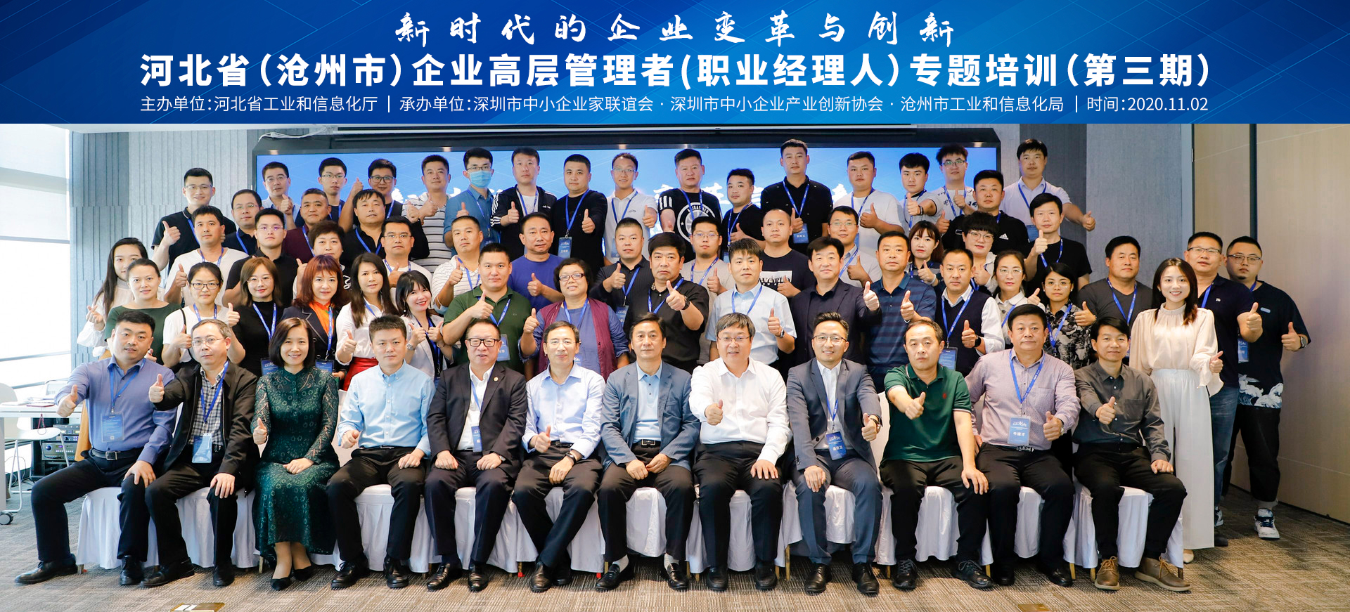 見(jiàn)圳客戶端·深圳新聞網(wǎng)2020年11月9日訊 近日,由河北省工業(yè)和信息化廳主辦,深圳市中小企業(yè)家聯(lián)誼會(huì)、深圳市中小企業(yè)產(chǎn)業(yè)創(chuàng)新協(xié)會(huì)、滄州市工業(yè)和信息化局承辦的“新時(shí)代的企業(yè)變革與創(chuàng)新——河北省中小企業(yè)高層經(jīng)營(yíng)管理者(職業(yè)經(jīng)理人)專題培訓(xùn)(滄州班)”在深圳隆重開(kāi)班。來(lái)自滄州市產(chǎn)業(yè)集群龍頭企業(yè)、優(yōu)秀民營(yíng)企業(yè)、“專精特新”企業(yè)、培育擬上市企業(yè)的董事長(zhǎng)、總經(jīng)理等共計(jì)56人參加培訓(xùn)。