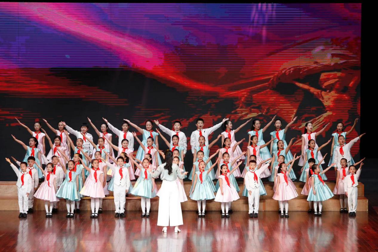 篇章三的主題是心向祖國,合唱曲目有澳門青少年聲樂藝術協(xié)會的小組唱《星星火炬更燦爛》、深圳市少年宮合唱《迎著太陽唱太陽》、羅湖區(qū)港人子弟學校表演唱《我愛你中國》、福田區(qū)福田小學合唱《少年中國夢》、鹽田區(qū)外國語小學合唱《愛我中華》,表達粵港澳青少年一心向黨,熱愛祖國的美好情感,讓在場觀眾愛國之情油然而生。