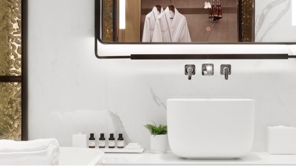夜幕降臨,賓客可慵懶地置身浴缸之中,閉目享受由B&O音響帶來的音樂廳般沉浸式體驗(yàn)?;驈娘h臺(tái)取過剛剛煮好的香茗,讓茶香雅韻充盈唇齒。酒店備好的浴品套裝,將讓賓客從發(fā)絲到肌膚,皆浸潤(rùn)于LE LABO的香氛宇宙,奢寵體驗(yàn)無與倫比。