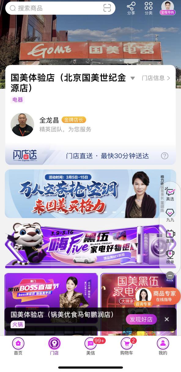 國美全力加速數(shù)字化進程,搭建線上線下雙平臺體系,讓國美有了本地化生活服務的基礎。方巍稱,“雙平臺”中的線上平臺定位為“線上購物廣場+本地生活服務”,是國美零售統(tǒng)領性的平臺,商品最多,連接的功能最強;線下則定位為“線下展示體驗+生活服務平臺”,集電器門店、家裝家居體驗店、綜合服務管家平臺、秀場、餐飲、休閑娛樂等強體驗和服務屬性的場景于一身,布局最全,體驗效果最好。