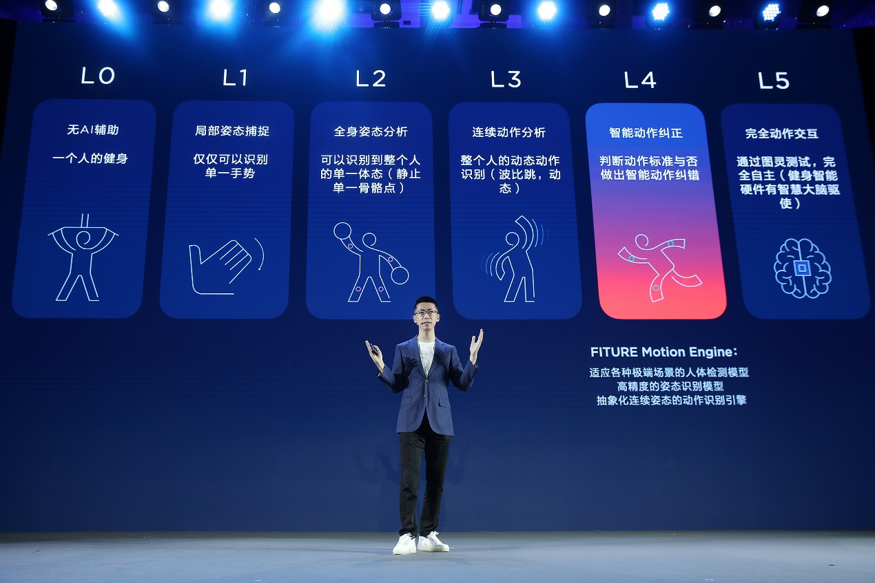 作為智能健身的第一品牌,F(xiàn)ITURE在“智能健身交互”體驗(yàn)上,還首次提出了人體動(dòng)態(tài)識(shí)別能力的層級(jí)標(biāo)準(zhǔn)。該層級(jí)分為5個(gè)等級(jí),涵蓋了單一的手勢(shì)識(shí)別,到由智慧大腦驅(qū)使的完全自主式交互體驗(yàn),為智能健身行業(yè)的交互能力建立了通用的標(biāo)準(zhǔn)。