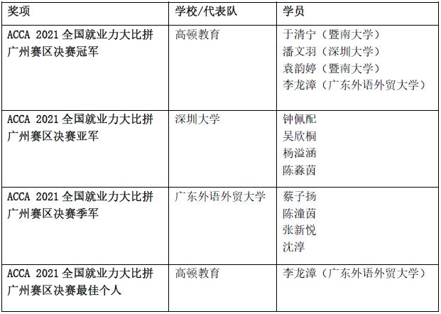 經(jīng)過4小時(shí)的激烈角逐,在評委的嚴(yán)格評選下,來自高頓教育、深圳大學(xué)和廣東外語外貿(mào)大學(xué)代表隊(duì)的同學(xué)獲得本次區(qū)域決賽的冠、亞、季軍。其中,冠、亞軍隊(duì)伍將于7月16日,代表廣州賽區(qū)出戰(zhàn)ACCA2021全國就業(yè)力大比拼總決賽,與國內(nèi)其他區(qū)域的優(yōu)秀隊(duì)伍同臺(tái)競技。