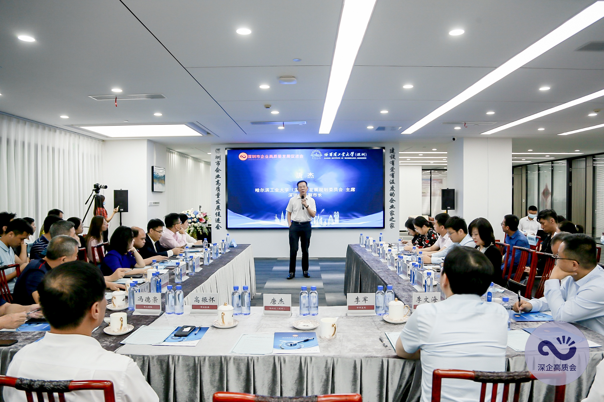 深圳市原副市長、哈爾濱工業(yè)大學(深圳)發(fā)展規(guī)劃委員會主席唐杰,深圳市決策咨詢委員會專職常務副主任高振懷,深圳市企業(yè)高質(zhì)量發(fā)展促進會名譽會長龐大同,深圳市市場監(jiān)督管理局黨組成員、副局長李軍,深圳市工商業(yè)聯(lián)合會黨組成員、專職副主席馮德崇等專家、學者以及相關(guān)部門負責人等參加活動。