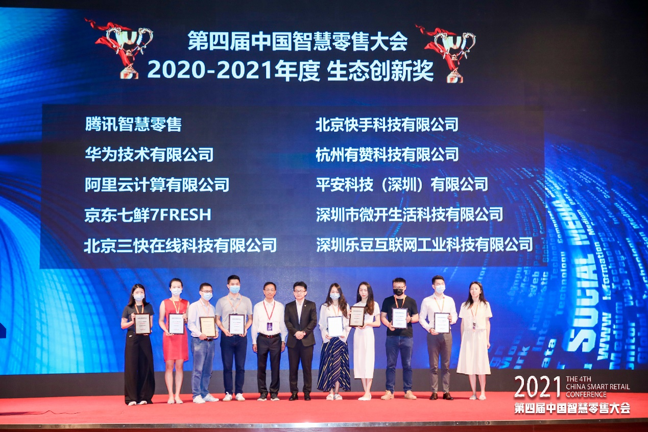 大會(huì)開(kāi)幕式上頒發(fā)“2020-2021年度智慧零售系列大獎(jiǎng)”,大會(huì)組委會(huì)從行業(yè)新技術(shù)應(yīng)用創(chuàng)新;經(jīng)營(yíng)、商業(yè)、組織、管理、服務(wù)等模式創(chuàng)新;全渠道、全產(chǎn)業(yè)鏈、全生產(chǎn)要素賦能等生態(tài)創(chuàng)新;領(lǐng)軍者推動(dòng)智慧零售創(chuàng)新發(fā)展等四個(gè)維度,共頒發(fā):新技術(shù)應(yīng)用創(chuàng)新獎(jiǎng)、模式創(chuàng)新獎(jiǎng)、生態(tài)創(chuàng)新獎(jiǎng)、創(chuàng)新人物獎(jiǎng)四大獎(jiǎng)項(xiàng)。華潤(rùn)萬(wàn)家、靈智數(shù)科、有贊、樂(lè)信等企業(yè)獲此榮譽(yù),天虹股份譚曉華、百果園焦岳等人獲得創(chuàng)新人物獎(jiǎng)。
