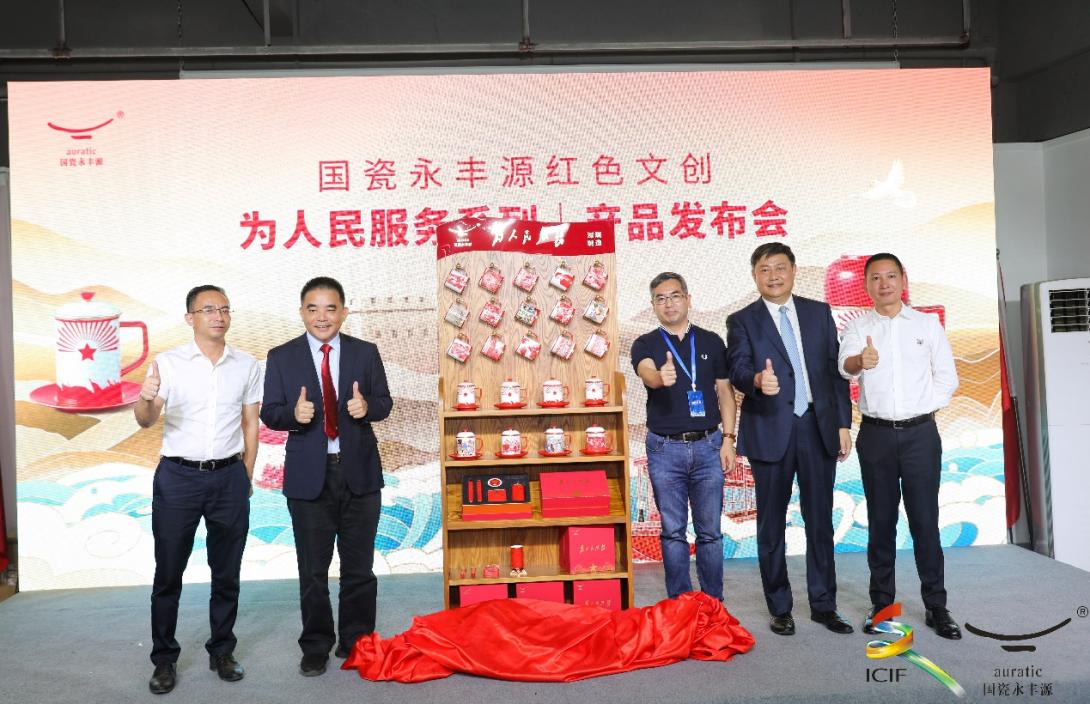 在大會(huì)現(xiàn)場(chǎng),國(guó)瓷永豐源劉權(quán)輝攜與會(huì)領(lǐng)導(dǎo)共同為紅色文創(chuàng)系列新品隆重揭幕。據(jù)了解,這一系列紅色文創(chuàng)產(chǎn)品,已于今年8月正式入駐北京國(guó)家黨史館。