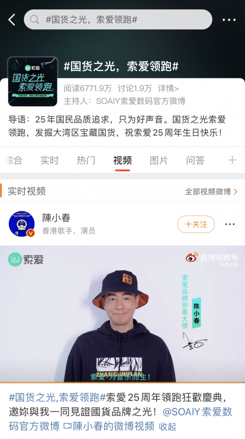 讀特客戶端·深圳新聞網(wǎng)2021年10月22日訊(記者 田志強(qiáng))近日,索愛廣州25周年慶領(lǐng)跑活動在網(wǎng)絡(luò)持續(xù)發(fā)酵,引爆輿論熱烈關(guān)注。作為音頻數(shù)碼行業(yè)首個登錄廣州塔的國貨品牌,索愛25周年領(lǐng)跑活動吸引了大量的媒體和達(dá)人齊聚廣州塔,索愛品牌和產(chǎn)品熱度以廣州為中心迅速向周邊地域傳播。在索愛冠名高鐵、簽約陳小春夫婦為品牌形象大使等品牌事件的疊加聚合效應(yīng)下,#國貨之光,索愛領(lǐng)跑#等話題和熱度持續(xù)傳播至各社交平臺,各個類別KOL相繼為索愛發(fā)聲,僅在微博平臺的話題閱讀量已突破數(shù)千萬。