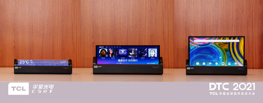 14"噴墨打印OLED卷軸屏,可以自由變換多種形態(tài),數(shù)字顯示鬧鐘、音樂播放器、顯示器,多種應(yīng)用形態(tài)無縫切換,完美融入家居場(chǎng)景中,盡顯柔性O(shè)LED顯示的魅力。它的卷曲半徑<R20mm,在高溫高濕條件下,卷曲壽命高達(dá)10萬次,再配合自發(fā)光高精度噴墨印刷工藝制備技術(shù),以及內(nèi)置的AI補(bǔ)償算法,可以使它的畫面色彩更加明艷通透,顯示效果也得到了大幅提升。該產(chǎn)品目前由TCL華星跟日本JOLED合作推出。