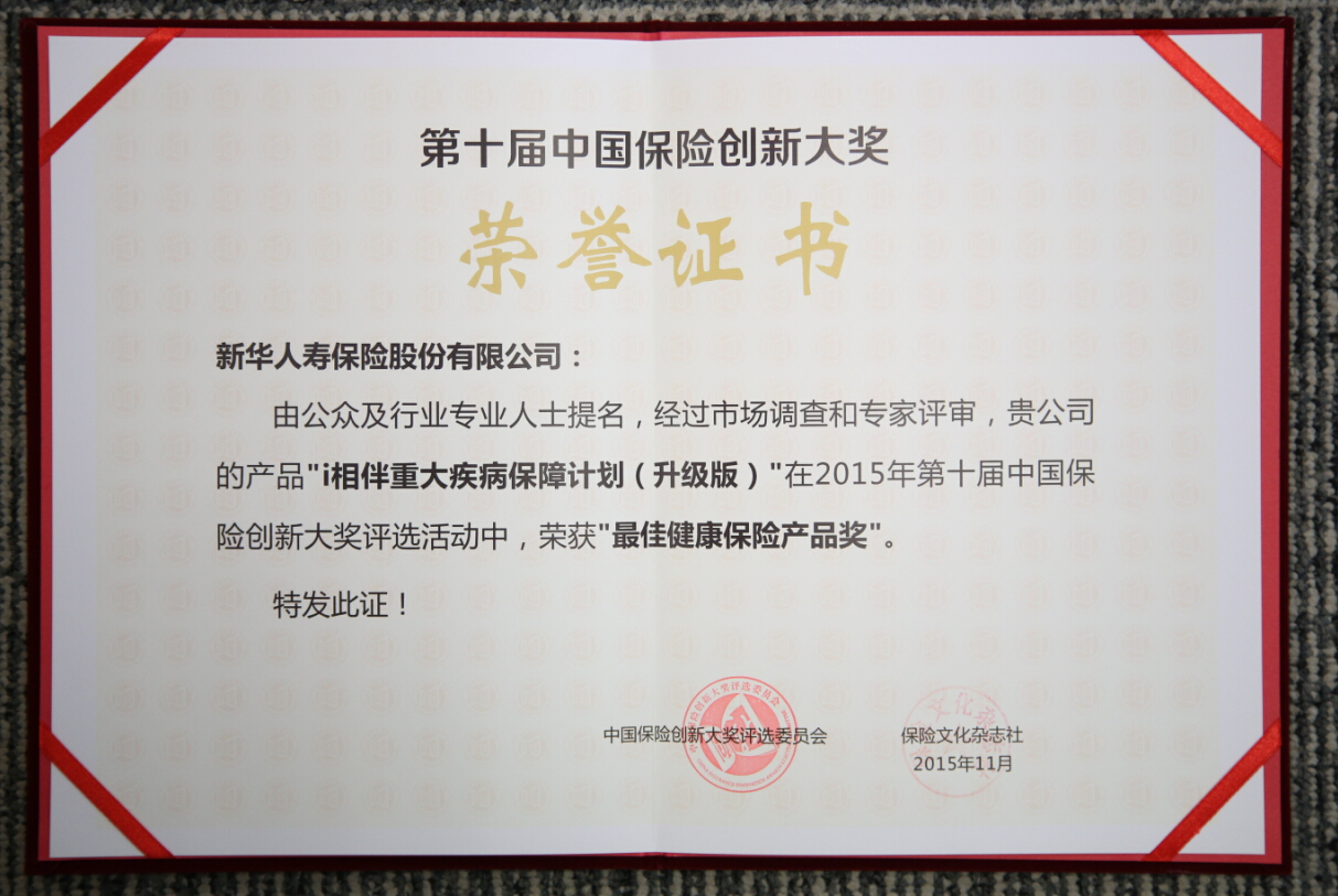2015年最佳健康保險產品獎