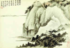 吳湖帆在所藏米芾《多景樓詩(shī)帖》冊(cè)首補(bǔ)繪的《北固山江山圖》(局部)