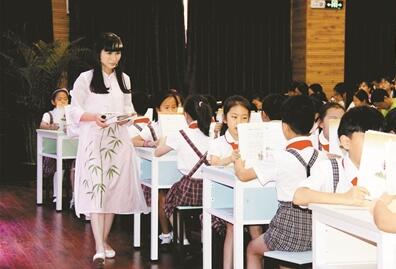 開(kāi)筆禮,是中國(guó)傳統(tǒng)中對(duì)少兒開(kāi)始識(shí)字習(xí)禮的一種啟蒙教育形式,被稱為人生四大禮之一,這一儀式俗稱“破蒙”。開(kāi)筆禮這一有象征意義的活動(dòng)每學(xué)年在怡景小學(xué)一年級(jí)新生中開(kāi)展,而且是家長(zhǎng)與孩子一同參加,讓孩子們?cè)诠彭嶏h香中學(xué)習(xí)尊師重教、知書(shū)達(dá)禮。去年9月28日孔子誕辰日,陳潔就與剛?cè)胱x怡景小學(xué)一年級(jí)的兒子朱彥欽一同感受了“開(kāi)筆禮”的隆重場(chǎng)面?!皟x式特別莊重,當(dāng)孩子鄭重為我端茶送水時(shí)我非常感動(dòng),這個(gè)活動(dòng)太有意義了?!标悵嵳f(shuō),當(dāng)天孩子們通過(guò)自正衣冠、禮敬先師、朱砂啟智、誦讀經(jīng)典,擊鼓明志等環(huán)節(jié),身臨其境地感受了我國(guó)古代學(xué)生入學(xué)的第一課。