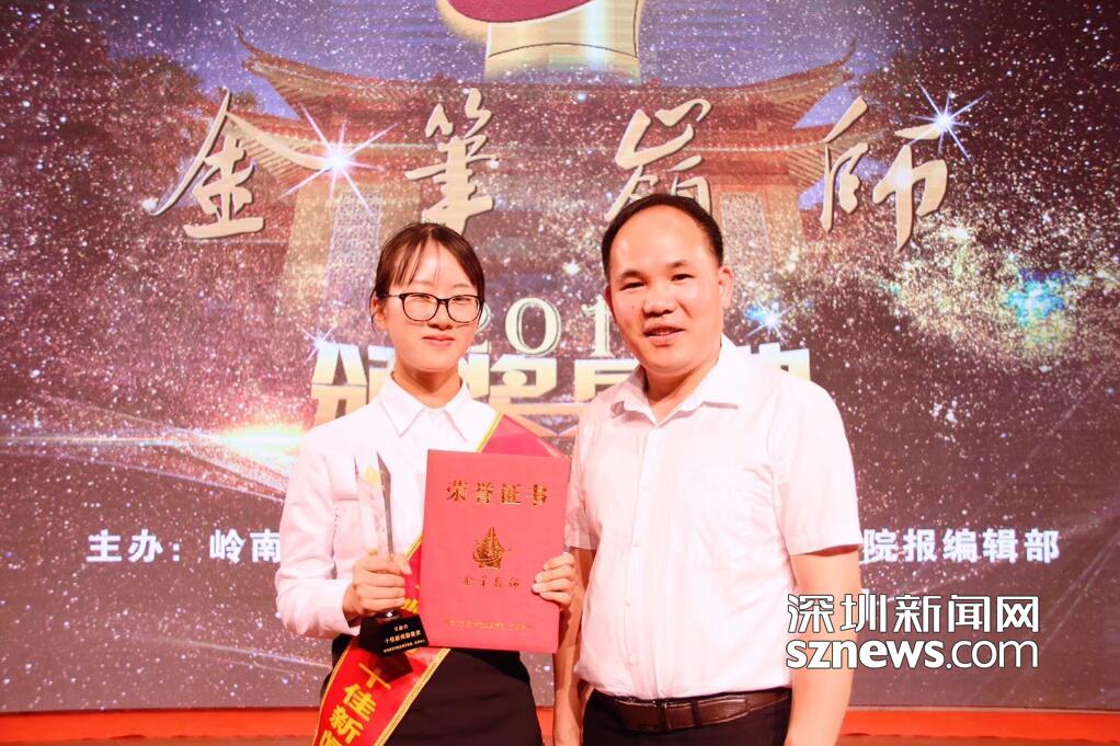 林老師受邀參加"金筆嶺師"的頒獎(jiǎng)盛典,為深圳二外2016屆學(xué)生王啟丹頒獎(jiǎng)