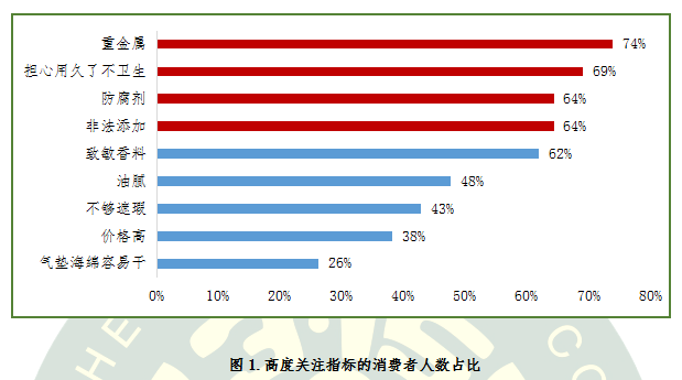 對(duì)于氣墊粉底這類兼具BB/CC霜和粉底功效的新型彩妝產(chǎn)品,消費(fèi)者最擔(dān)心的問題是什么呢?項(xiàng)目調(diào)查數(shù)據(jù)顯示,關(guān)注氣墊粉底“重金屬”問題的消費(fèi)者占比高達(dá)74%,“擔(dān)心氣墊粉底用久了不衛(wèi)生”的消費(fèi)者占比為69%,還有64%的消費(fèi)者關(guān)注“防腐劑”和“非法添加劑”問題。
