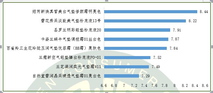 表7.8款氣墊粉底測(cè)試結(jié)果總表