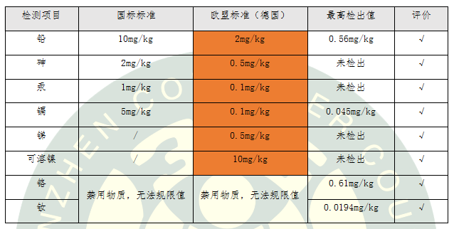 檢測(cè)結(jié)果顯示:對(duì)于有限量要求的重金屬,8款氣墊粉底均滿足國(guó)標(biāo)和歐盟最嚴(yán)格的限值要求;對(duì)于沒有限量要求的重金屬鉻和釹,也滿足在正常的,或合理預(yù)見的使用條件下不對(duì)人會(huì)體造成危害。
