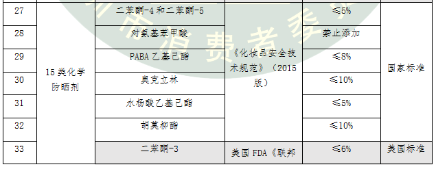 表4.15類化學(xué)防曬劑標(biāo)準(zhǔn)要求比對(duì)及評(píng)價(jià)結(jié)果