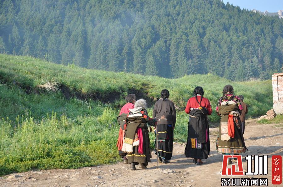 鎮(zhèn)內(nèi)的主要街道分屬兩省管轄。南北兩端,幾百米之內(nèi),有兩座壯觀宏大的寺院建筑群隔“江”(白龍江源流)相望,甘肅境內(nèi)是“賽赤寺”。四川境內(nèi)有“格爾底寺”。李仁奇攝