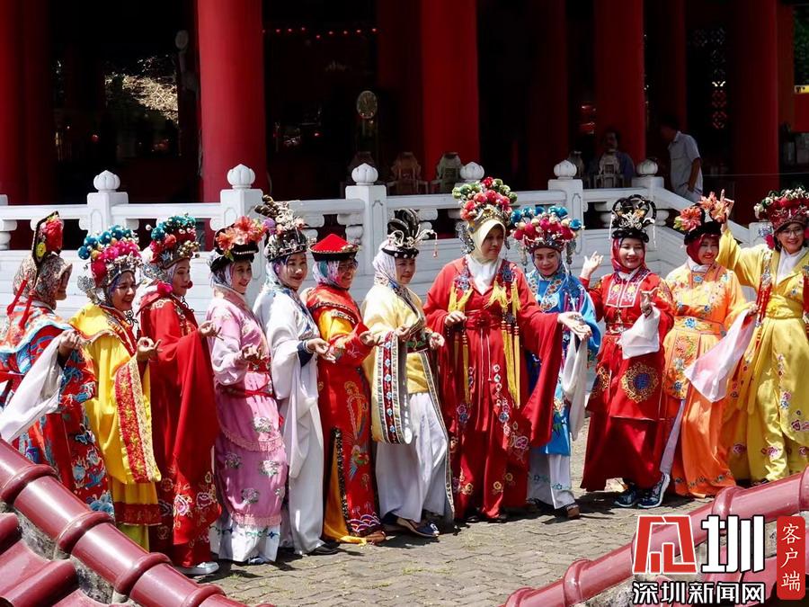 在鄭和廟,常有當?shù)嘏阅滤沽肿庥弥袊鴤鹘y(tǒng)戲劇服裝在寺內(nèi)留影。李仁奇攝