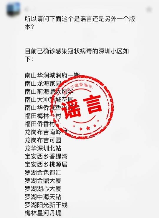 根據(jù)國家衛(wèi)健委疾控局“以社區(qū)防控為主”、加強“群防群控”的通知精神,深圳于1月30日晚響應市民的強烈呼聲,公布了第一批31個曾有新型冠狀病毒感染的肺炎病人逗留的小區(qū)(場所)名單。